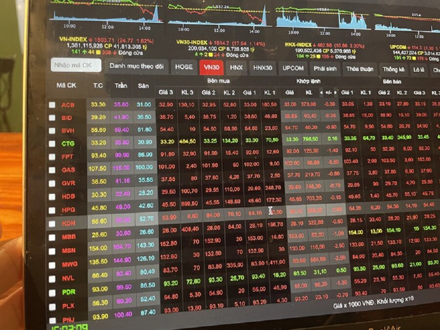Tuy nhiên sau 14 giờ, bảng điện tử một số công ty chứng khoán bất ngờ đứng yên. Các giao dịch của nhà đầu tư không hiển thị trên bảng, đồng thời chỉ số không cập nhật. Nhiều nhà đầu tư lo lắng, bán ra chốt lời khiến hàng loạt cổ phiếu từ xanh, tím chuyển sang giảm mạnh.