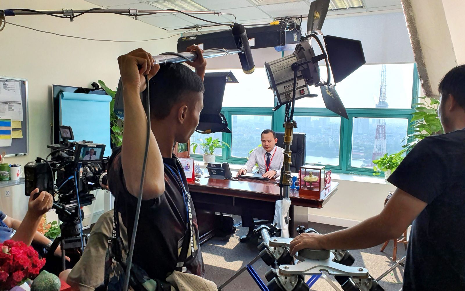 Ekip truyền hình của Nghe nhìn Đông Nam trong một lần tác nghiệp