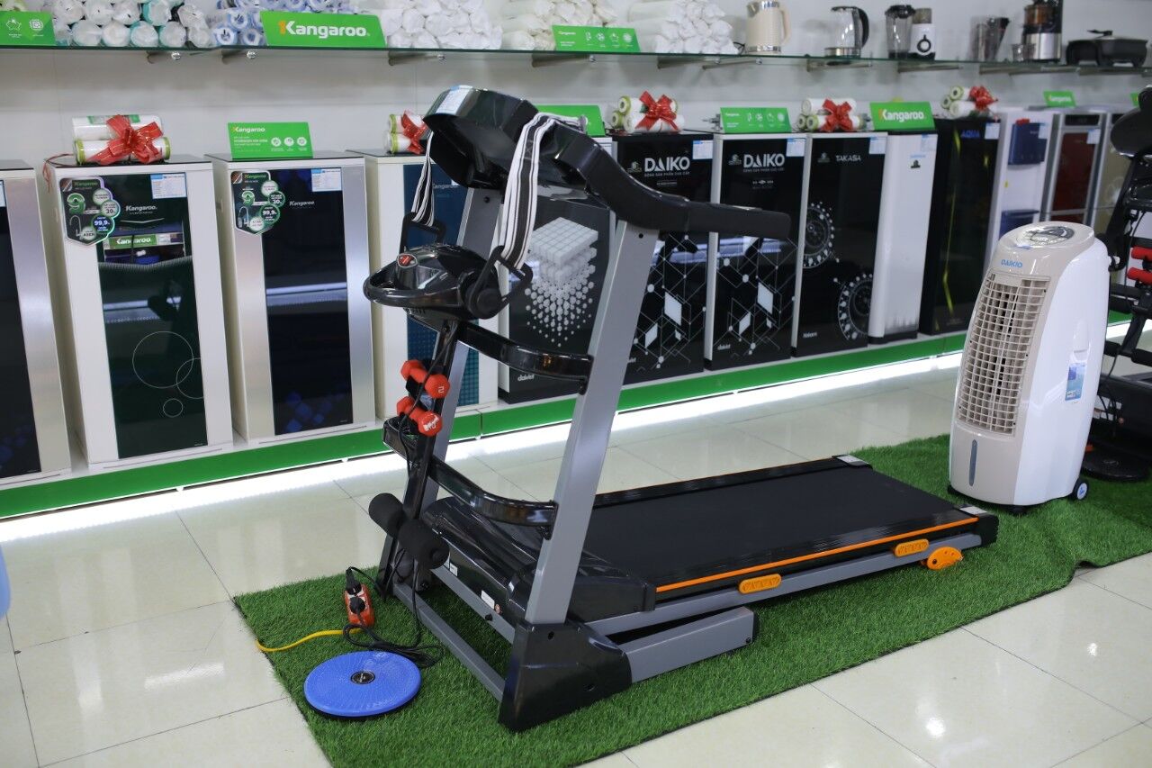 Máy chạy bộ đa năng DAIKIOSAN được trang bị màn hình LCD 5 inch siêu rộng giúp bạn dễ dàng theo dõi: quãng đường, tốc độ, calo, thời gian, nhịp tim. Đồng thời, loa nghe nhạc Hifi và kết nối USB mang đến âm nhạc cực đã, tiếp thêm động lực cho những buổi tập luyện. Máy có công suất kéo tối đa 2.5HP, được cài sẵn 12 chương trình tập tự động giúp người dùng có thể thoải mái lựa chọn bài tập theo sở thích, nhu cầu cùng các dụng cụ đa năng kèm theo như: đai massage, thanh gập bụng, đĩa xoay eo giúp quá trình tập luyện của bạn khoa học, đa dạng hơn, mang lại hiệu quả cao hơn. Với vận tốc cực đại lên đến 14km/h và độ nâng dốc bằng tay 3 mức độ mang đến cho bạn trải nghiệm “leo núi” vô cùng chân thực, khung sườn máy được thiết kế chắc chắn kết hợp với tải trọng máy lên đến 120kg đảm bảo an toàn trong từng bước chạy của mọi thành viên trong gia đình.