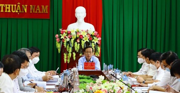 Làm việc với Ban Thường vụ Huyện ủy Thuận Nam, đồng chí Bí thư Tỉnh ủy đã nắm bắt tình hình quán triệt, cụ thể hóa và triển khai thực hiện các nghị quyết chuyên đề, kết luận của Ban Thường vụ Tỉnh ủy; kết quả thực hiện nhiệm vụ năm 2021 và phương hướng, nhiệm vụ năm 2022 của Đảng bộ huyện. Qua đánh giá, việc tổ chức nghiên cứu, học tập, quán triệt và triển khai thực hiện các nghị quyết kịp thời, nghiêm túc, phù hợp với diễn biến tình hình dịch COVID-19 trên địa bàn huyện. Huyện ủy cũng đã có kế hoạch cụ thể triển khai thực hiện các nghị quyết chuyên đề một cách nghiêm túc. Về kết quả triển khai nhiệm vụ năm 2021, mặc dù trong điều kiện gặp nhiều khó khăn, nhưng huyện Thuận Nam đã thực hiện đạt và vượt 13/15 chỉ tiêu, nhiệm vụ phát triển kinh tế-xã hội, quốc phòng-an ninh, xây dựng Đảng và hệ thống chính trị; thực hiện chủ động, kịp thời các biện pháp ứng phó linh hoạt với tình hình dịch COVID-19, vừa phòng dịch, vừa đẩy mạnh sản xuất, kinh doanh và đầu tư, đảm bảo an sinh xã hội và cuộc sống của người dân.