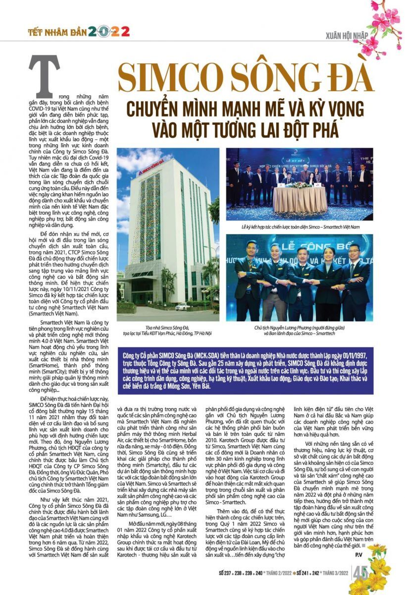Công ty Cổ phần SIMCO Sông Đà (MCK:SDA) tiền thân là doanh nghiệp Nhà nước được thành lập ngày 01/11/1997, trực thuộc Tổng Công ty Sông Đà. Sau gần 25 năm xây dựng và phát triển, SIMCO Sông Đà đã khẳng định được thương hiệu và vị thế của mình với các đối tác trong và ngoài nước trên các lĩnh vực: Đầu tư và thi công xây lắp các công trình dân dụng, công nghiệp, hạ tầng kỹ thuật; Xuất khẩu lao động; Giáo dục và Đào tạo; Khai thác và chế biến đá trắng ở Mông Sơn, Yên Bái.