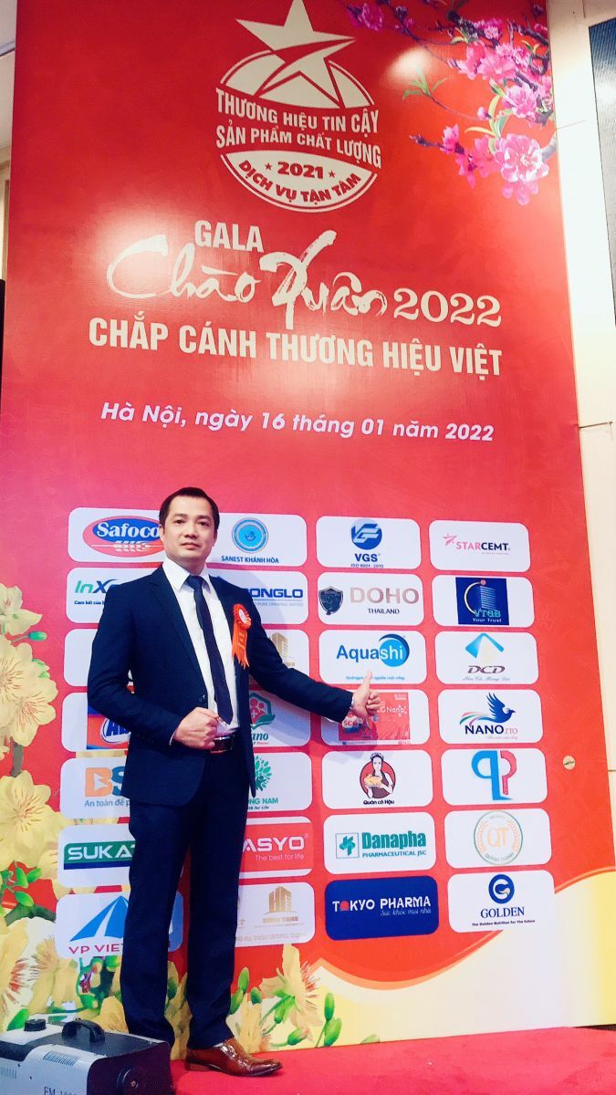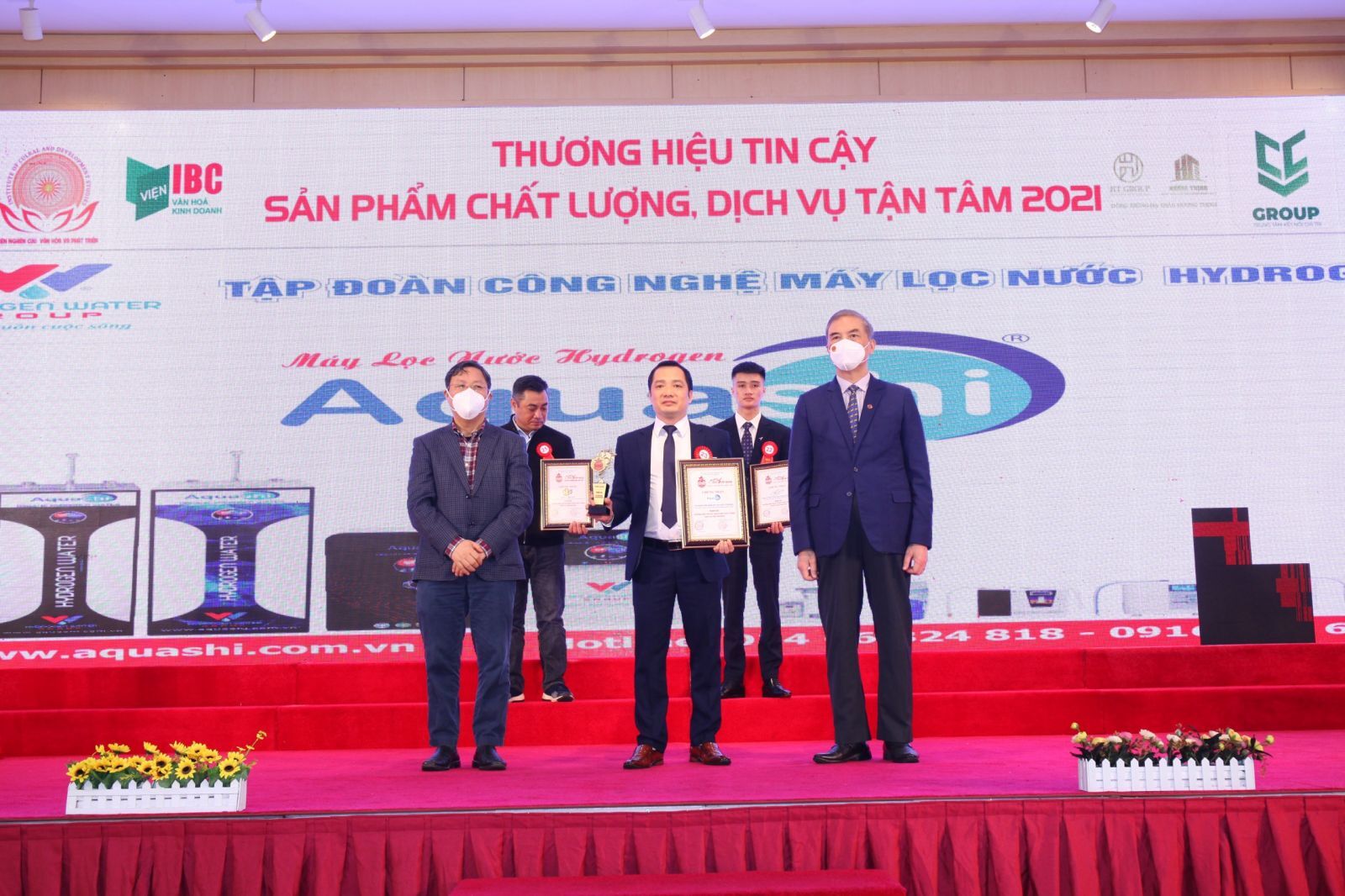 Ông Lê Ngọc Đạt - Chủ tịch kiêm Tổng Giám đốc Tập Đoàn Công Nghệ Máy Lọc Nước Hydrogen nhận cúp, chứng nhận Top 10 “Thương hiệu tin cậy - Sản phẩm chất lượng - Dịch vụ tận tâm” năm 2021