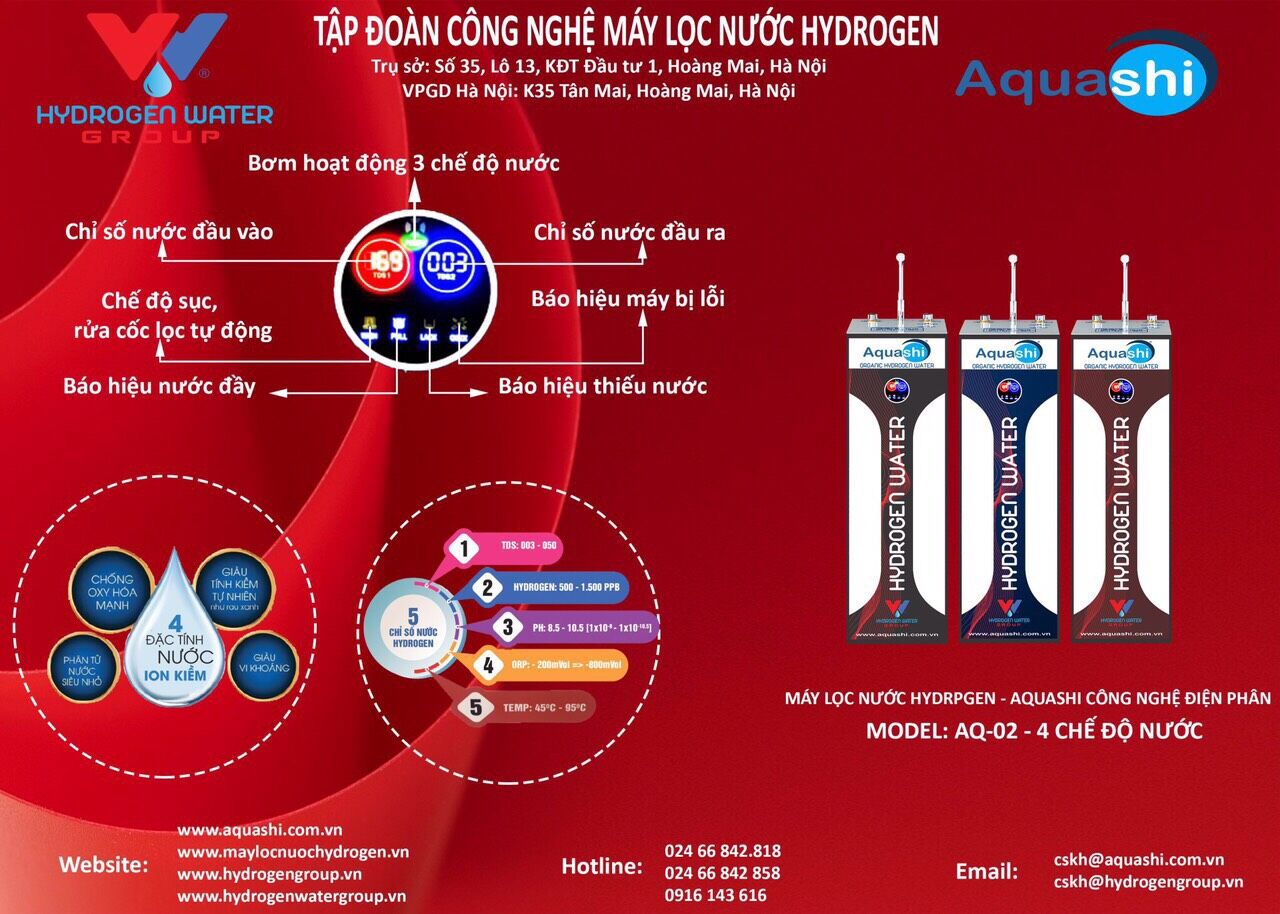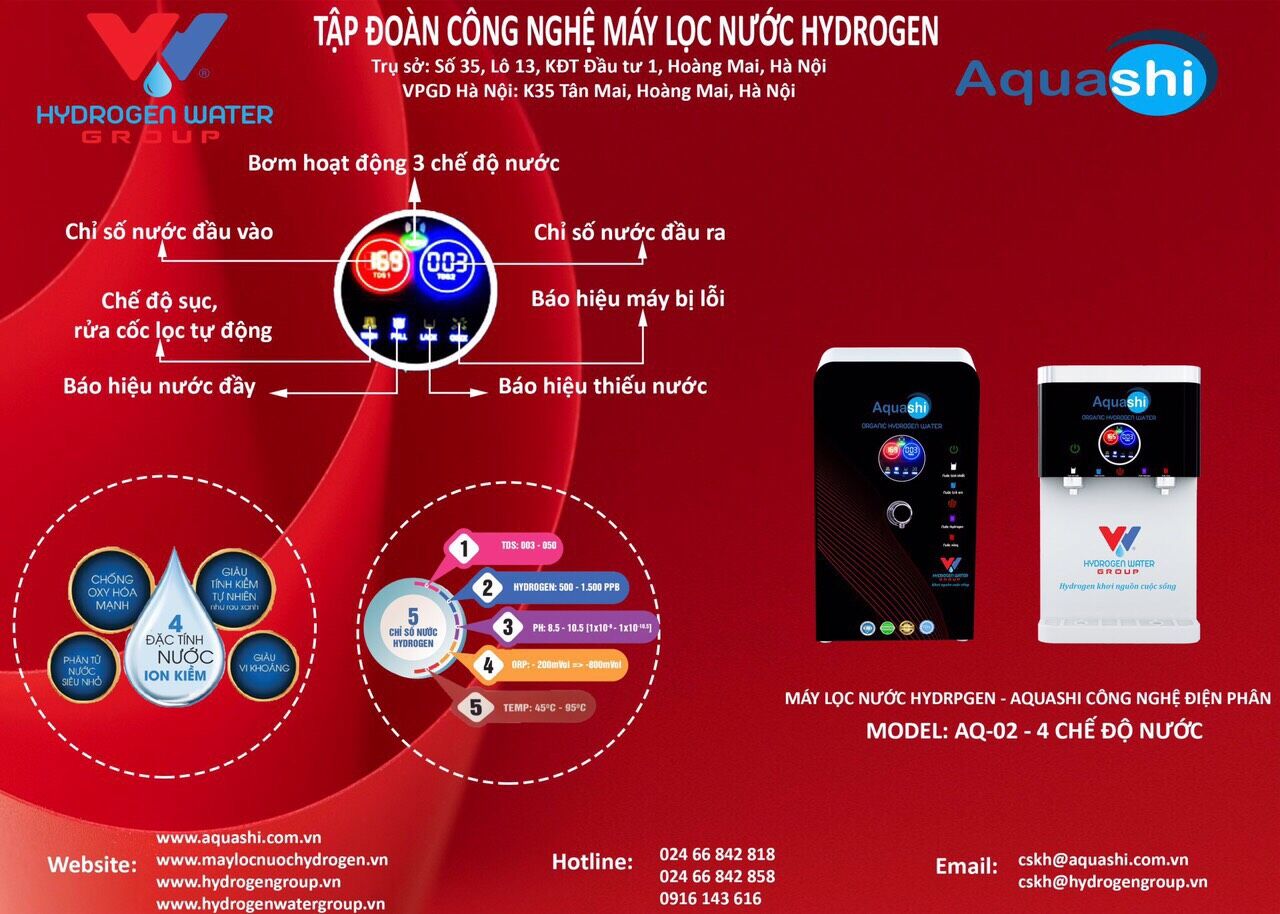 Sau hơn 20 năm ấp ủ, Tập Đoàn Công Nghệ Máy Lọc Nước Hydrogen đã rất thành công trong lĩnh vực công nghệ xử lý nguồn nước và chế tạo ra các dòng máy chất lượng cao cấp nhưng giá tầm trung mang thương hiệu nổi tiếng - Aquashi.