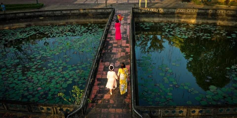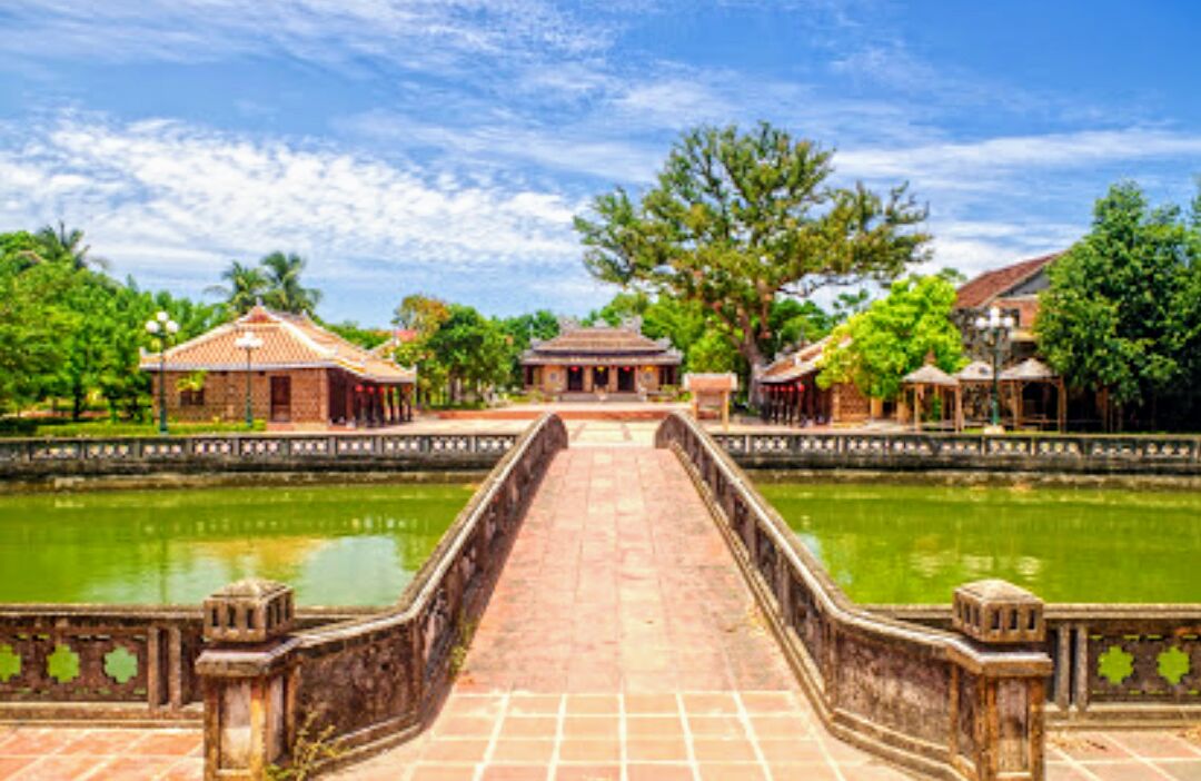 Hồ bán nguyệt bắc qua hồ sen và cổng Tam quan được xem là một kiến trúc nghệ thuật độc đáo