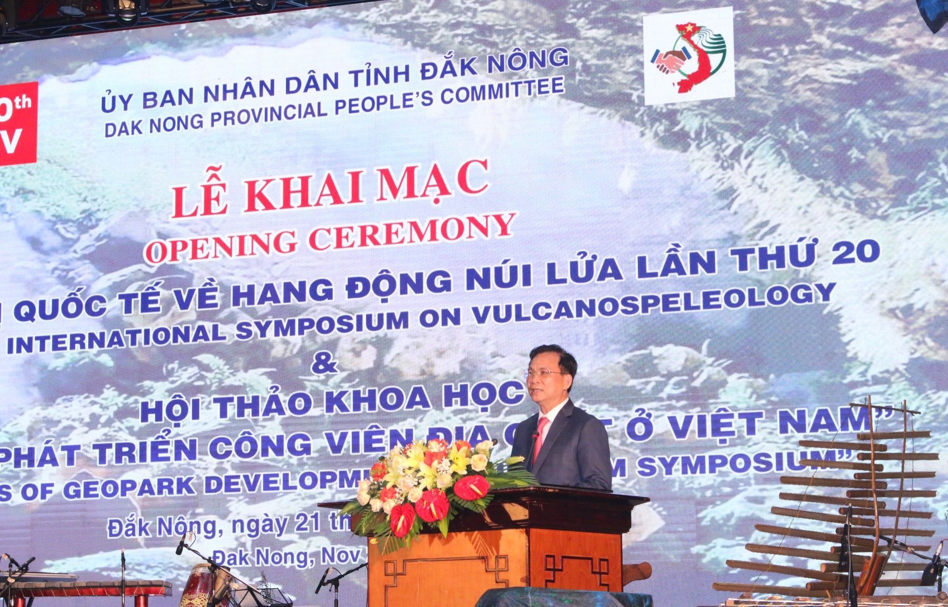 Speaking at the opening of the Conference, Mr. Ho Van Muoi - Deputy Secretary of the Provincial Party Committee, Chairman of the Provincial People's Committee expressed the honor of being the host of the 20th International Conference on Volcanic Caves - International Conference on Volcanic Caves. Volcanic caves were held for the first time in Vietnam and the Scientific Conference "15 years of Geopark development in Vietnam". At the same time affirming: The initiative to host an international scientific event affirms the determination of Dak Nong province in preserving and rational use of heritage values, especially geological heritages; is an opportunity for Dak Nong province to introduce and promote the system of volcanoes and volcanic caves - world-class geological heritages in the Dak Nong UNESCO Global Geopark region to domestic and international friends; at the same time, it is also an opportunity for Dak Nong province to learn from international experiences in the field of conservation, management and sustainable exploitation of heritage, serving local socio-economic development.