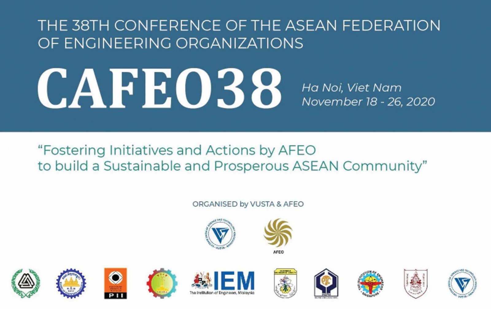 WE, the national engineering organizations in the 10 ASEAN member countries, collectively known as the ASEAN Federation of Engineering Organizations (AFEO), namely, Pertubuhan Ukur, Jurutera dan Arkitek (PUJA), Brunei Darussalam; Board of Engineers Cambodia (BEC), Cambodia; Persatuan Insinyur Indonesia (PII), Indonesia; the Lao Union of Science and Engineering Associations (LUSEA), Lao PDR; the Institution of Engineers, Malaysia (IEM), Malaysia; the Federation Myanmar Engineering Societies (Fed.MES), Myanmar; the Philippine Technological Council (PTC), The Philippines; The Institution of Engineers, Singapore (IES), Singapore; The Engineering Institute of Thailand under the King’s Patronage (EIT), Thailand; and the Vietnam Union of Science and Technology Associations (VUSTA), Viet Nam, participate in the 38th Conference of the ASEAN Federation of Engineering Organizations (CAFEO 38) online in Hanoi from the 18th to 26th November with the theme: “Fostering innitiatives and actions by AFEO to build a sustainable and prosperous ASEAN community”.We acknowledged that the COVID-19 pandemic has caused a severe and multidimensional impact on the region, and expressed our optimism that ASEAN Community building efforts will continue apace with ASEAN’s strong mettle and self-reliance. We underscored the need for ASEAN to uphold the spirit of a cohesive and responsive ASEAN Community to further strengthen cooperation and advance our partnerships to ensure resilience and sustainable development in Southeast Asia and beyond.