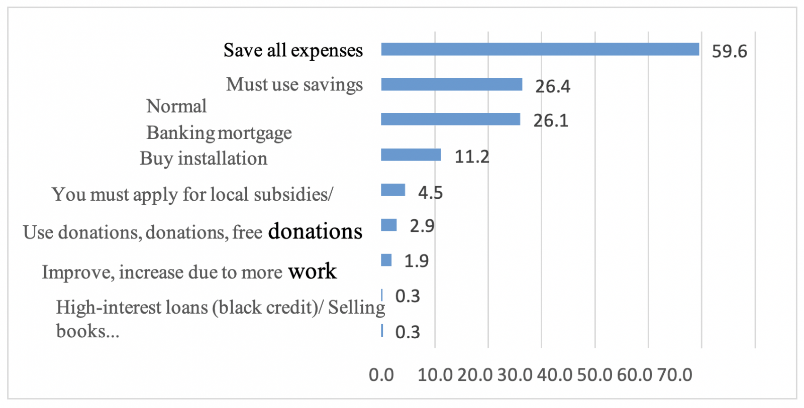Falling challenging situations, 59.6% of employees choose to save their expenses; 26.4% must use savings and personal accumulation; 11.2% had to borrow money from relatives to cover living expenses; 4.5% must choose to buy installments instead of paying in full as always; 2.9% must apply for local subsidies or use donations, donations and supports to cover their lives; and 0.3% must borrow high-interest rates (black use) or sell social insurance books.