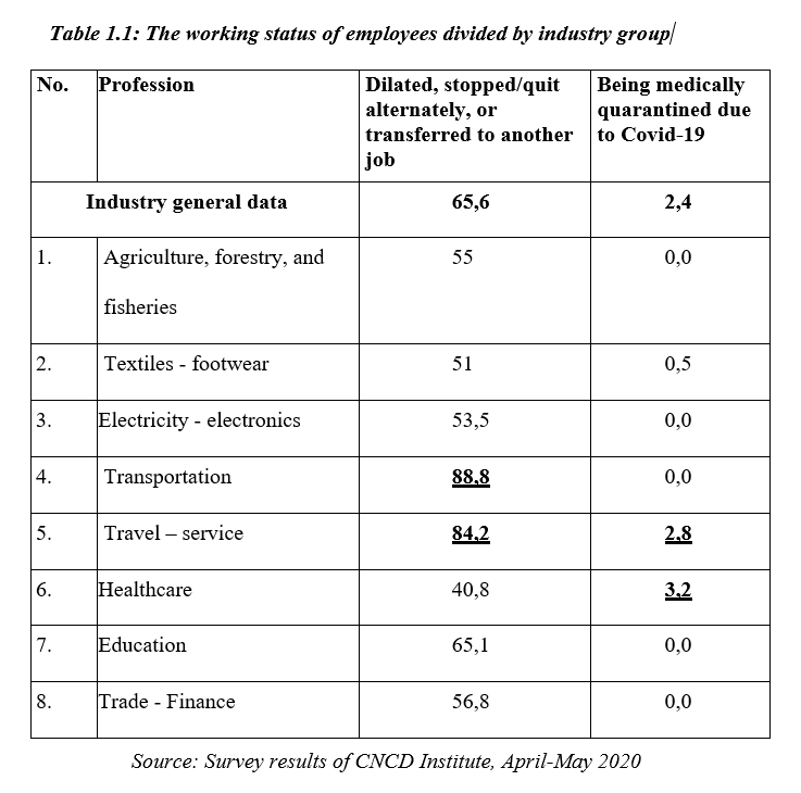 Resource: Institute of Workers and Trade Unions. Vietnam General Confederation of Labor April, May /2020