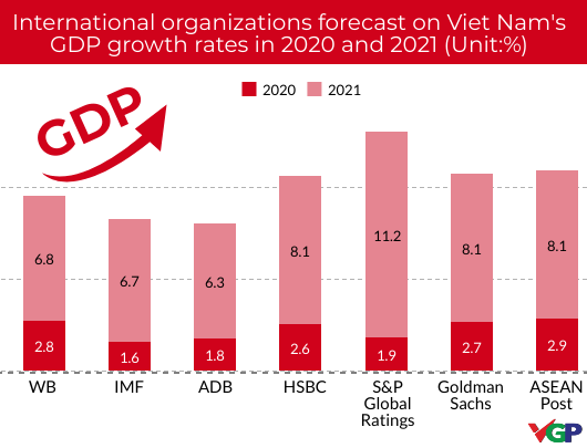 Vietnamese economy was forecast to expand from 1.6% to 2.8% in 2020, according to updated reports of international organizations.