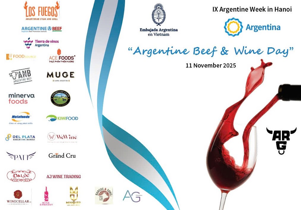 Esta celebración cultural y gastronómica anual invita al público vietnamita a descubrir los sabores, las tradiciones y el estilo de vida argentinos, con un enfoque especial en sus productos más emblemáticos: la carne vacuna y el vino. El evento también presentará quesos y yerba mate argentinos seleccionados, enriqueciendo la experiencia de la diversa cultura culinaria de Argentina.