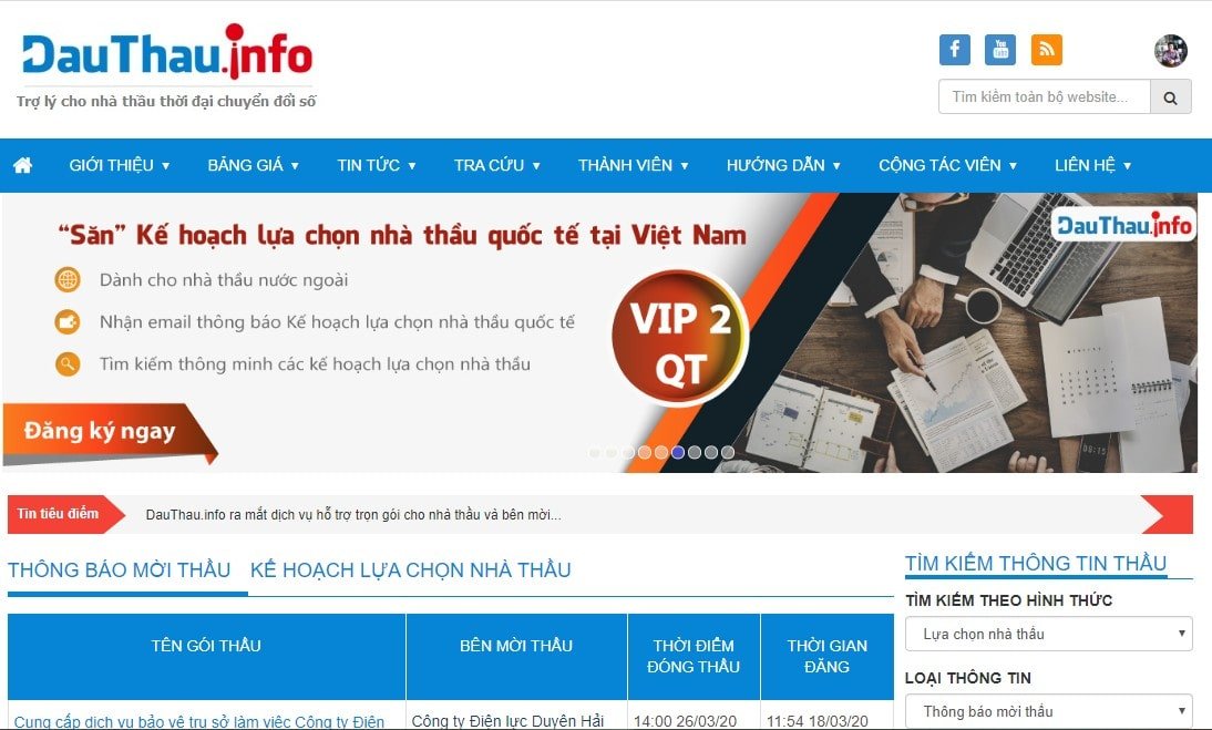 Currently, in order to meet the maximum bidding needs of individuals and businesses, DauThau.info has provided a variety of software packages for analyzing bidding information with different advantages and features. Accordingly, businesses and contractors could easily search and hunt for bid information from the time when it has not been announced, and at the same time monitor the process of bidding and bidding until the bidding results were available.