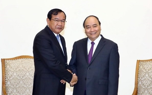 Prime Minister Nguyen Xuan Phuc (R) and Cambodian Deputy Prime Minister and Minister of Foreign Affairs and International Cooperation Prak Sokhonn