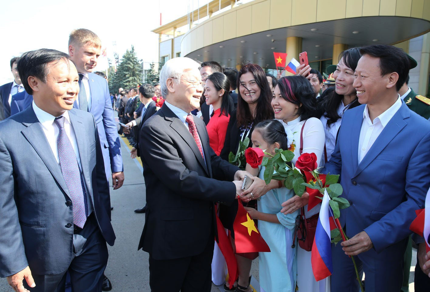 General Secretary Nguyen Phu Trong meets representatives of the Vietnamese community in Russia _Photo: VNA