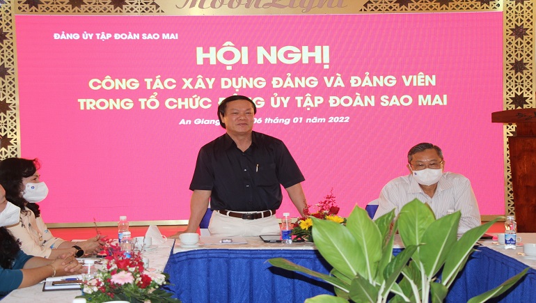 On the afternoon of January 6, 2022, at the Dong Xuyen Hotel Convention Center (Long Xuyen City, An Giang Province), the delegation of An Giang Provincial Party Committee, led by Mr. Le Van Nung - Standing Deputy Secretary of the Provincial Party Committee cum Chairman of the Provincial People's Council, accompanied by leaders of the Party Committee of the Provincial Agencies & Enterprises and Party Committees, visited and worked with the Party Committee of Sao Mai Group.