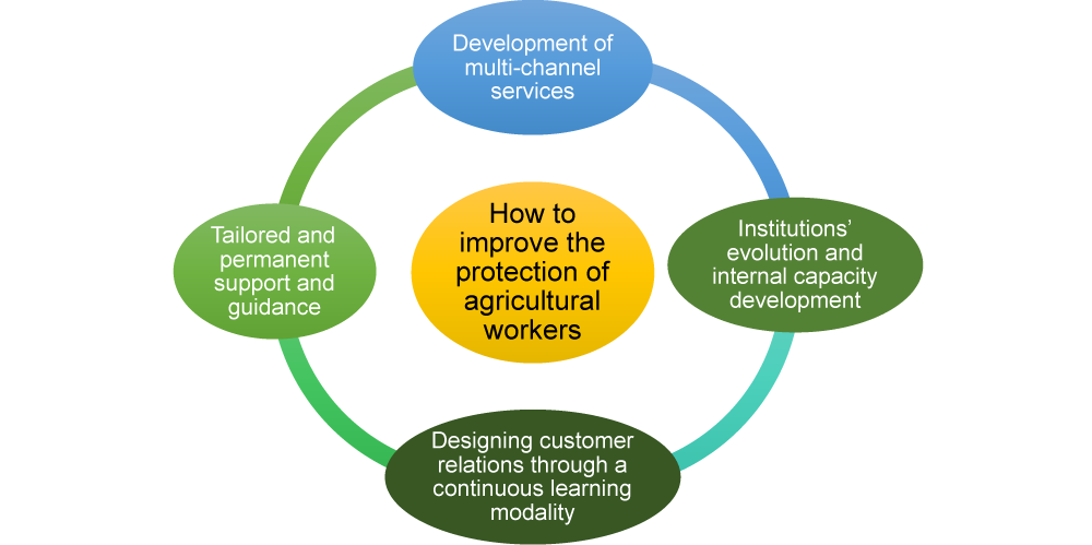 | Tailored and permanent support and guidance | This approach enhances the protection of agricultural workers in different ways, taking into account the unique characteristics of their profession. |