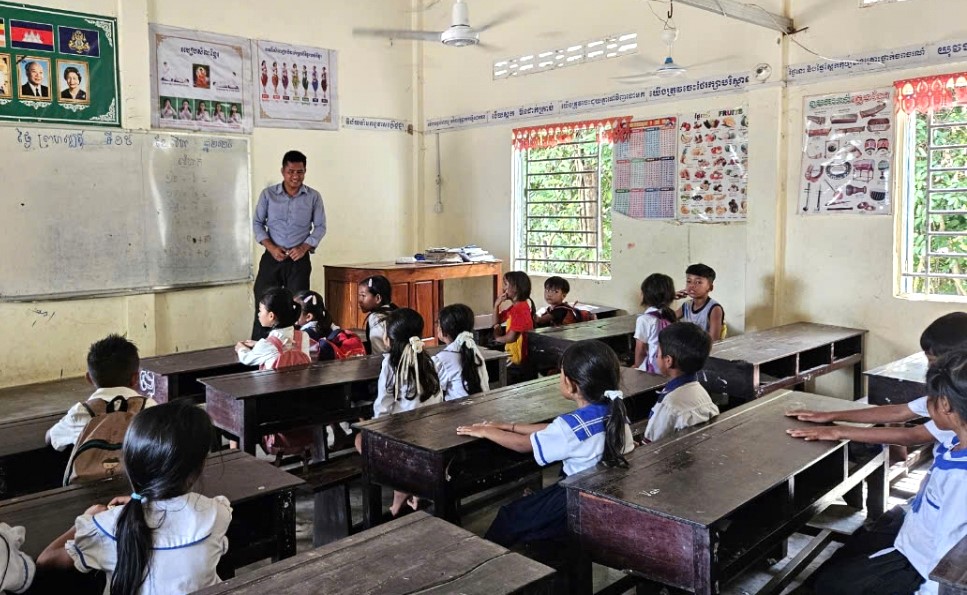 Phuoc Hoa-Kampong Thom School regularly receives attention from local education officials. In the photo, there is a class observation and training inspection by the Kampong Thom Provincial Department of Education.