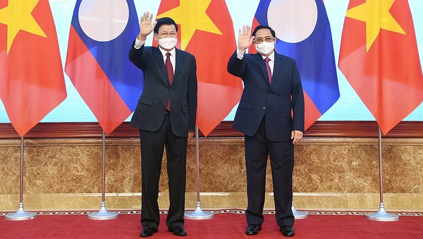 PM Pham Minh Chinh and Lao Party General Secretary and State President Thongloun Sisoulith. (Photo: VGP)