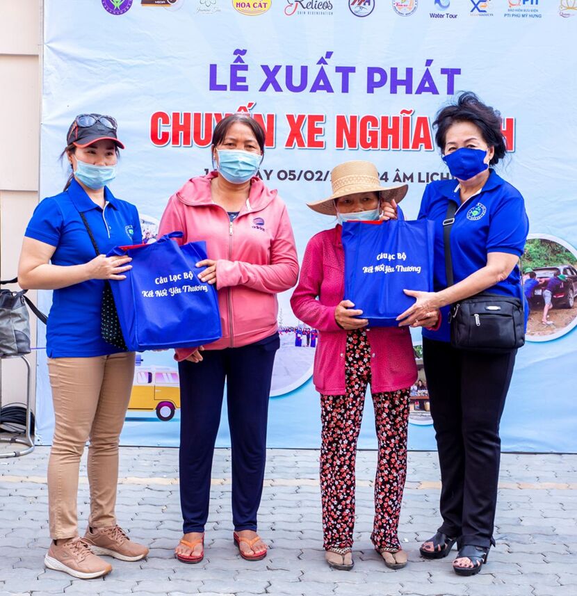 Không chỉ trao tặng vé xe 0 đồng, ban tổ chức CLB Kết Nối Yêu Thương cũng đại diện cho các mạnh thường quân trao tặng các phần quà cho bà con bao gồm các nhu yếu phẩm cần thiết để bà con có quà cho gia đình và góp phần Tết thêm ấm no.