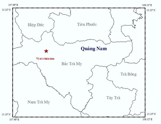 Theo thông tin từ Trung tâm báo tin động đất và cảnh báo sóng thần -Viện Vật lý địa cầu, mới đây, vào lúc 15 giờ 0 phút ngày 28/8, một trận động đất có độ lớn 3,1 độ Richter đã xảy ra tại khu vực huyện Bắc Trà My. Trận động đất này xảy ra tại vị trí (15,357 vĩ độ Bắc; 108,117 độ kinh Đông), độ sâu chấn tiêu khoảng 9,5 km.