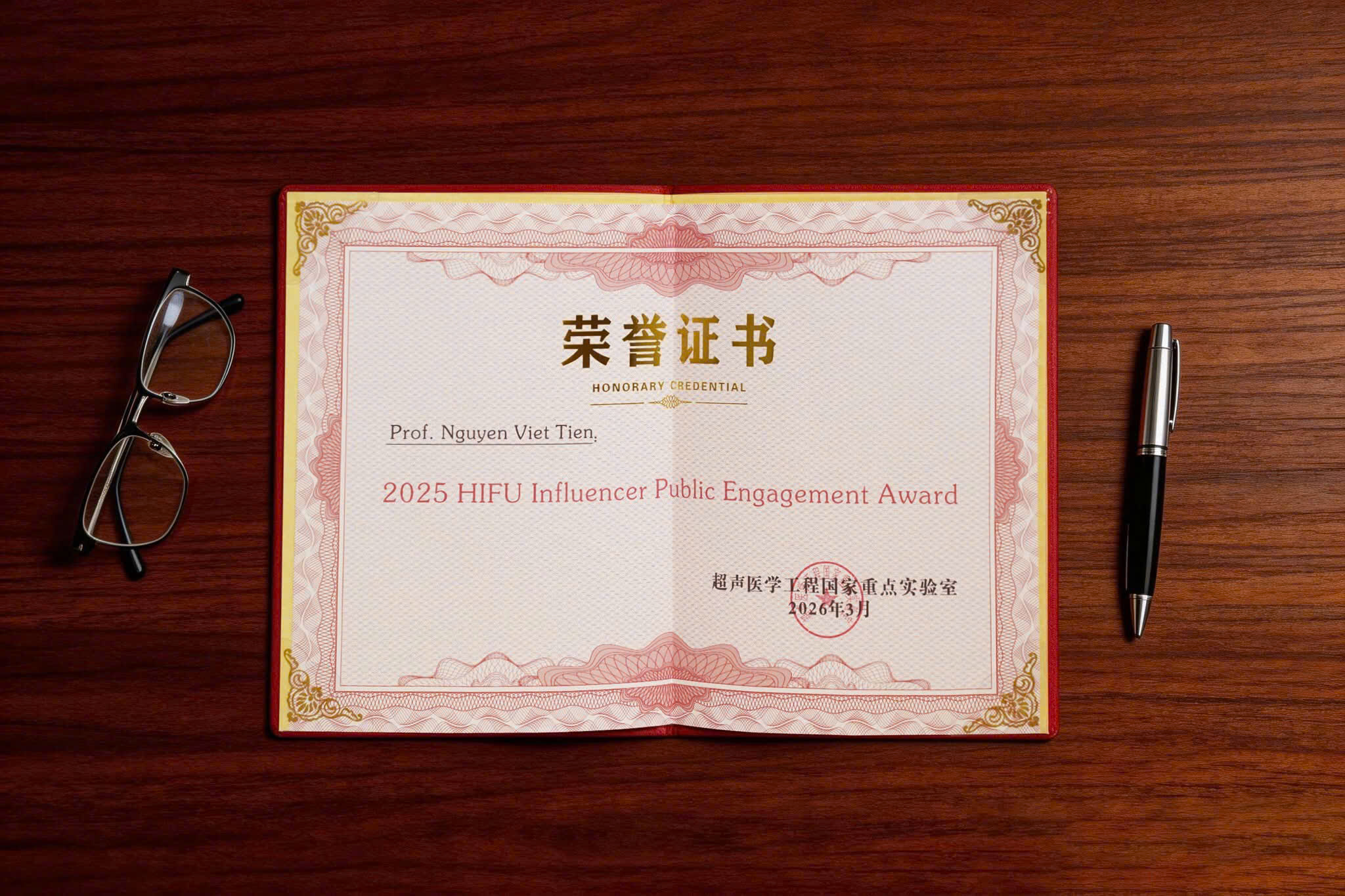 Bằng vinh danh "Chuyên gia HIFU có tầm ảnh hưởng lớn nhất năm 2025" dành tặng AHLĐ.NGND.GS.TS. Nguyễn Viết Tiến