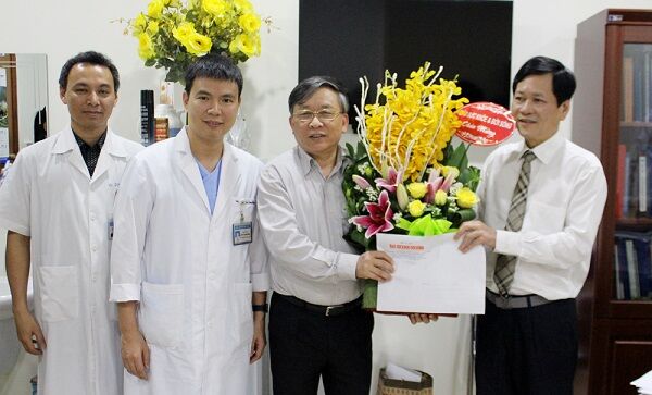 TTƯT.BS. Trần Sĩ Tuấn - TBT Báo Sức khỏe & Đời sống chúc mừng PGS.TS. Nguyễn Tiến Quyết và kíp phẫu thuật BV Việt Đức thực hiện thành công ca mổ ghép tạng năm 2016.
