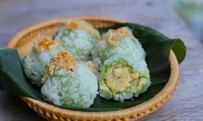Bánh khúc làng Diềm thơm ngon với thịt mỡ, đỗ xanh và hạt tiêu.