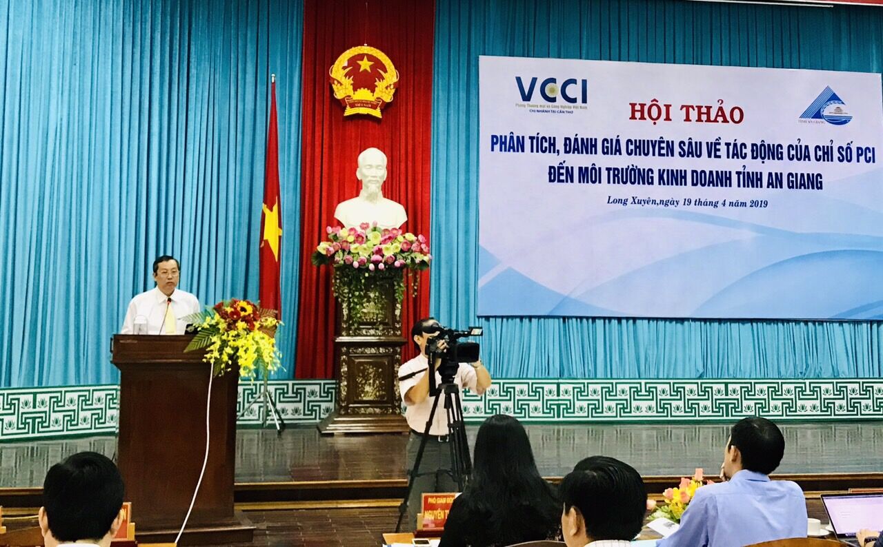 VNHN-Sáng ngày 19/4, UBND tỉnh An Giang phối hợp với Phòng Thương mại và Công nghiệp Việt Nam (VCCI) đã tổ chức hội thảo Phân tích, đánh giá chuyên sâu về tác động của chỉ số PCI đến môi trường kinh doanh tỉnh An Giang.