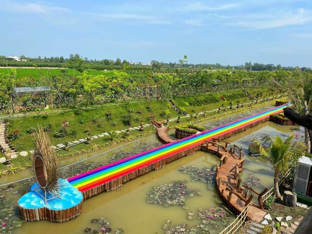 Nằm bên triền sông Tiền đầy nắng, gió, với bãi tắm nhân tạo ven sông sẽ mang đến cho du khách cảm giác sảng khoái hiếm nơi nào có được. Gây ấn tượng hơn hết chính là nơi đây có tác phẩm gỗ điêu khắc chiều dài 24,5m thể hiện phong cảnh làng quê Việt Nam xưa, kết hợp với các dịch vụ phòng nghỉ theo chuẩn resort, nhà hàng ẩm thực, quầy bar kiến trúc du thuyền, quầy lưu niệm, bãi tắm cồn cát vàng tự nhiên… nơi đây sẽ mang đến cho du khách những trải nghiệm lưu luyến khó quên khi đến nơi miệt vườn sông nước.