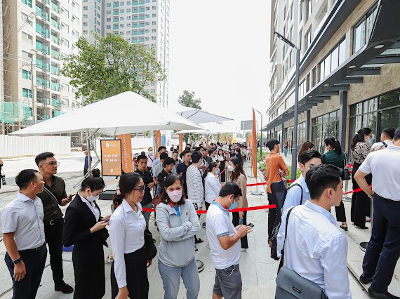 Ngay từ sáng ngày 3/11, hàng ngàn khách hàng đã đến xếp hàng tham dự sự kiện trải nghiệm căn hộ mẫu ngay tại dự án. Sức hút mạnh mẽ bởi đây là cơ hội trực tiếp để người mua nhà hiểu rõ về không gian sống tương lai, cũng là cách gián tiếp để nhà phát triển Masterise Homes khẳng định cam kết về tiến độ bàn giao lẫn chất lượng chuẩn quốc tế.