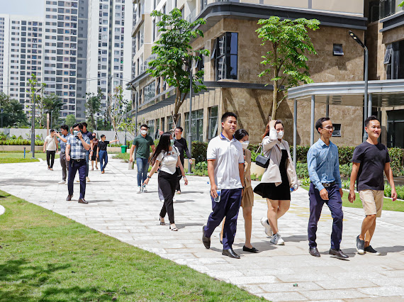 Khách hàng ấn tượng với nội khu rộng rãi và kiến trúc bên ngoài dự án rất nổi bật