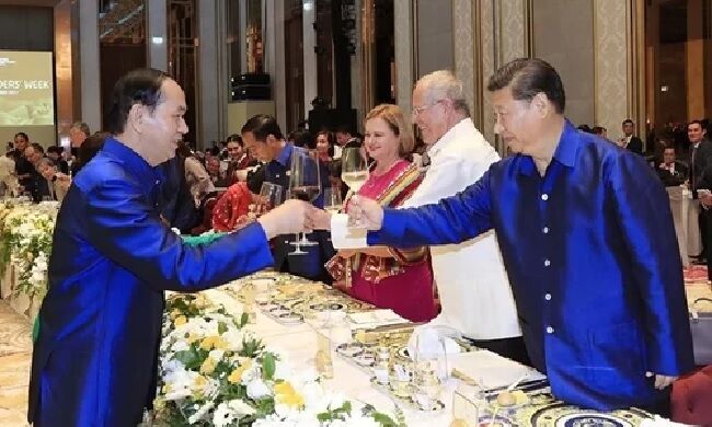 Chủ tịch nước Trần Đại Quang nâng cốc cùng Chủ tịch Trung Quốc Tập Cận Bình. Ảnh:TTXVN.
