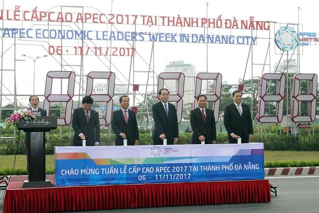 Chủ tịch Nước Trần Đại Quang cùng đại diện các đơn vị ban ngành bấm đồng hồ đếm ngược đến tuần lễ cấp cao Apec 2017 tại TP.Đà Nẵng