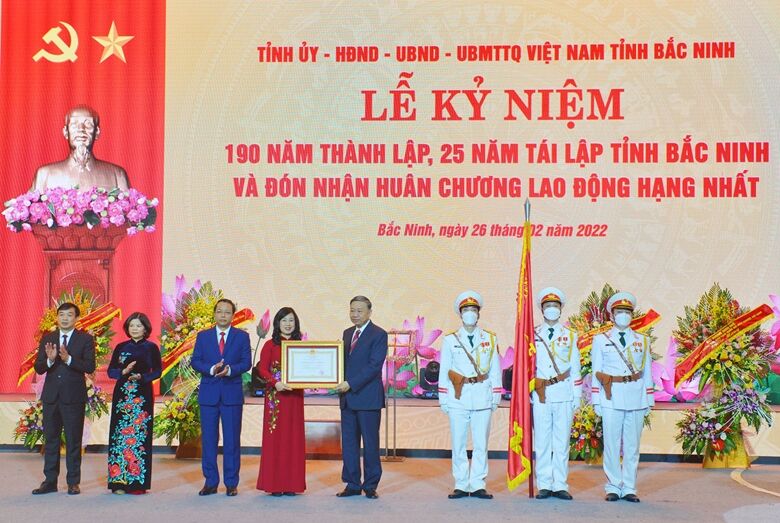 Nhân dịp này, thay mặt lãnh đạo Đảng và Nhà nước, Đại tướng Tô Lâm đã trao Huân chương Lao động hạng Nhất cho Đảng bộ, chính quyền và Nhân dân tỉnh Bắc Ninh.