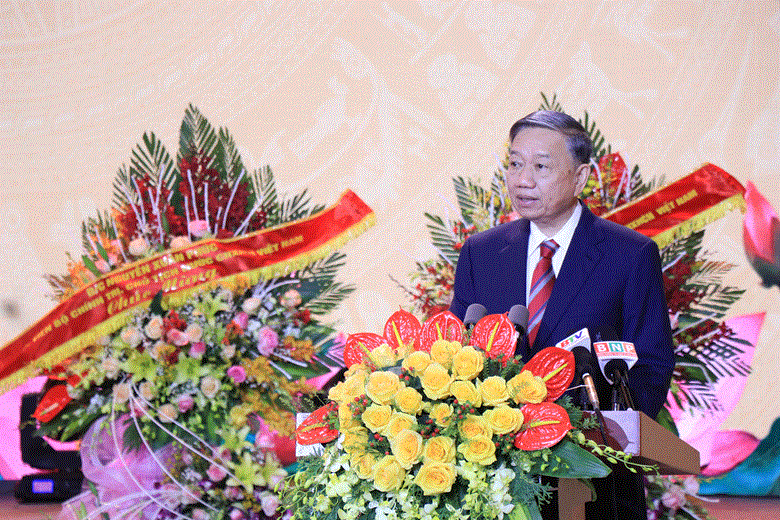 Thay mặt lãnh đạo Đảng, Nhà nước, Đại tướng Tô Lâm, Uỷ viên Bộ Chính trị, Bộ trưởng Bộ Công an biểu dương và chúc mừng những thành tựu to lớn mà Đảng bộ, Chính quyền và Nhân dân tỉnh Bắc Ninh đã đạt được trong những năm qua.