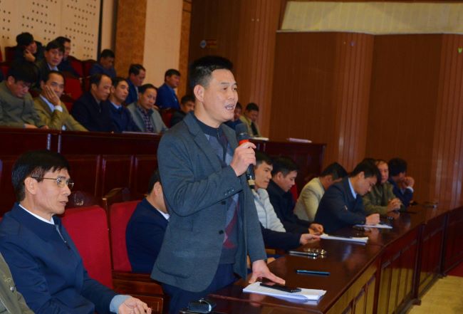 Chủ tịch UBND phường Tân Hồng (thành phố Từ Sơn) nêu ý kiến tại hội nghị
