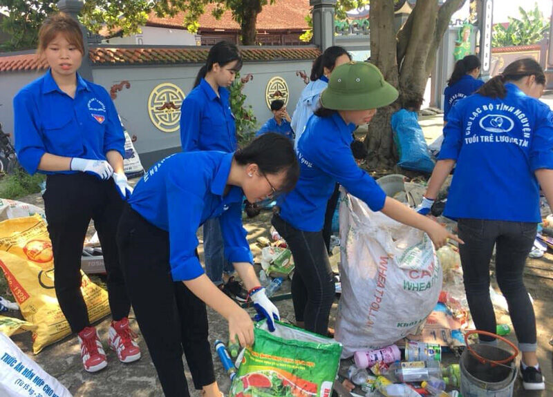 ĐVTN huyện Lương Tài thu gom, phân loại rác thải gây quỹ từ thiện.