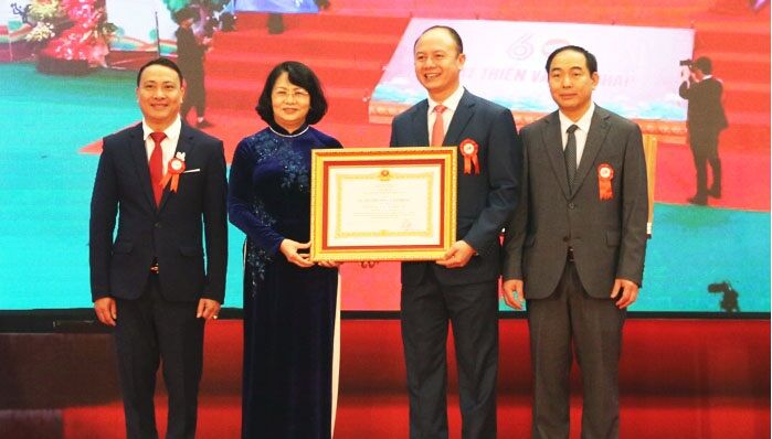 Phó Chủ tịch nước Đặng Thị Ngọc Thịnh trao tặng Huân chương Lao động hạng Nhất cho trường Đại học TDTT Bắc Ninh.