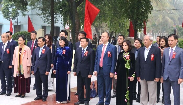 Các đại biểu dâng hoa tại Đài tưởng niệm Chủ tịch Hồ Chí Minh tại trường Đại học TDTT Bắc Ninh.