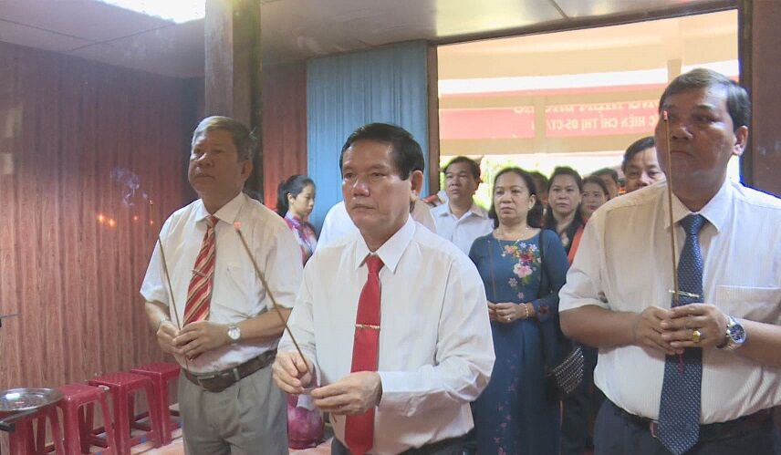 VNHN - Đoàn đại biểu Tỉnh ủy, HĐND, UBND tỉnh Trà Vinh do đồng chí Trần Trí Dũng, Ủy viên Ban chấp hành Trung ương Đảng, Bí thư Tỉnh ủy, Chủ tịch Hội đồng nhân dân tỉnh Trà Vinh dẫn đầu đã đến đặt vòng hoa, dâng hương tại Đền thờ Bác Hồ, ấp Vĩnh Hội, xã Long Đức và Nghĩa trang liệt sĩ tỉnh.