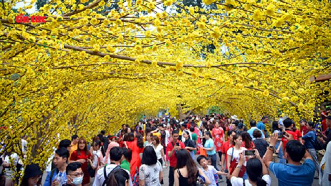 Phố ông đồ, đường hoa mai là điểm nhấn trong Lễ hội Tết Việt ở trung tâm TP Hồ Chí Minh, thu hút đông đảo người dân