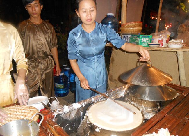 Và cuối cùng là tráng bánh, người làm phải đun nước trong nồi có lắp khuân bánh xôi lên, sau đó mới múc môt thìa bột lên trên khuân bánh, cán đều bột ra khuân, đạy vung lại và chờ 1-2 phút khi bánh chín thì lấy thanh tre mỏng, cuốn lây một phần bánh, sau đó nhấc bánh ra ngoài. Lưu ý, trước khi tráng, bột phải được khuấy nhẹ, đều tay để bột dậy thì khi tráng bánh mới mềm dẻo và không bị hạt cát.