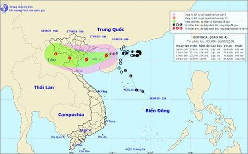 Dự báo trong 24 giờ tới, bão di chuyển theo hướng Tây Tây Nam, mỗi giờ đi được khoảng 10km. Đến 4h ngày 17/8, vị trí tâm bão ở khoảng 20,1 độ Vĩ Bắc; 106,9 độ Kinh Đông, ngay trên vùng biển các tỉnh từ Quảng Ninh đến Nghệ An. Sức gió mạnh nhất vùng gần tâm bão mạnh cấp 8-9 (60-90km/giờ), giật cấp 11. Phạm vi gió mạnh cấp 6, giật cấp 8 khoảng 100km tính từ tâm bão.