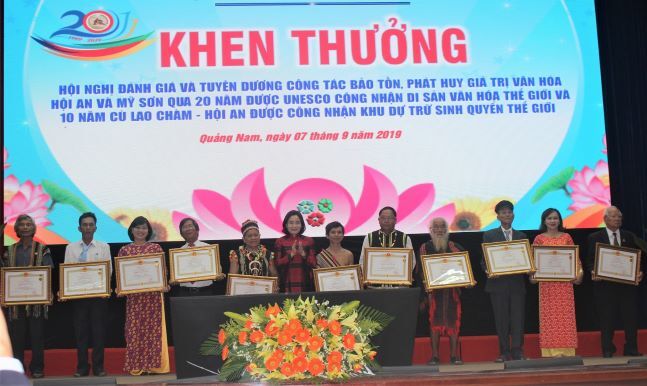 Trước đó, thừa ủy nhiệm của Chủ tịch nước, bà Trịnh Thị Thủy, Thứ trưởng Bộ VH,TT&DL đã trao bằng nghệ nhân ưu tú cho 13 cá nhân; Bộ Ngoại Giao cũng đã tặng bằng khen cho 5 tập thể và 5 cá nhân đã có nhiều thành tích trong công tác bảo tồn, phát huy giá trị đô thị cổ Hội An, khu đền tháp Mỹ Sơn qua 20 năm được UNESCO công nhận di sản văn hóa thế giới và 10 năm Cù Lao Chàm - Hội An được công nhận khu dự trữ sinh quyển thế giới. Ngoài ra, UBND tỉnh còn tôn vinh một số tổ chức, cá nhân đã có nhiều đóng góp trong công tác bảo tồn các di sản thế giới.