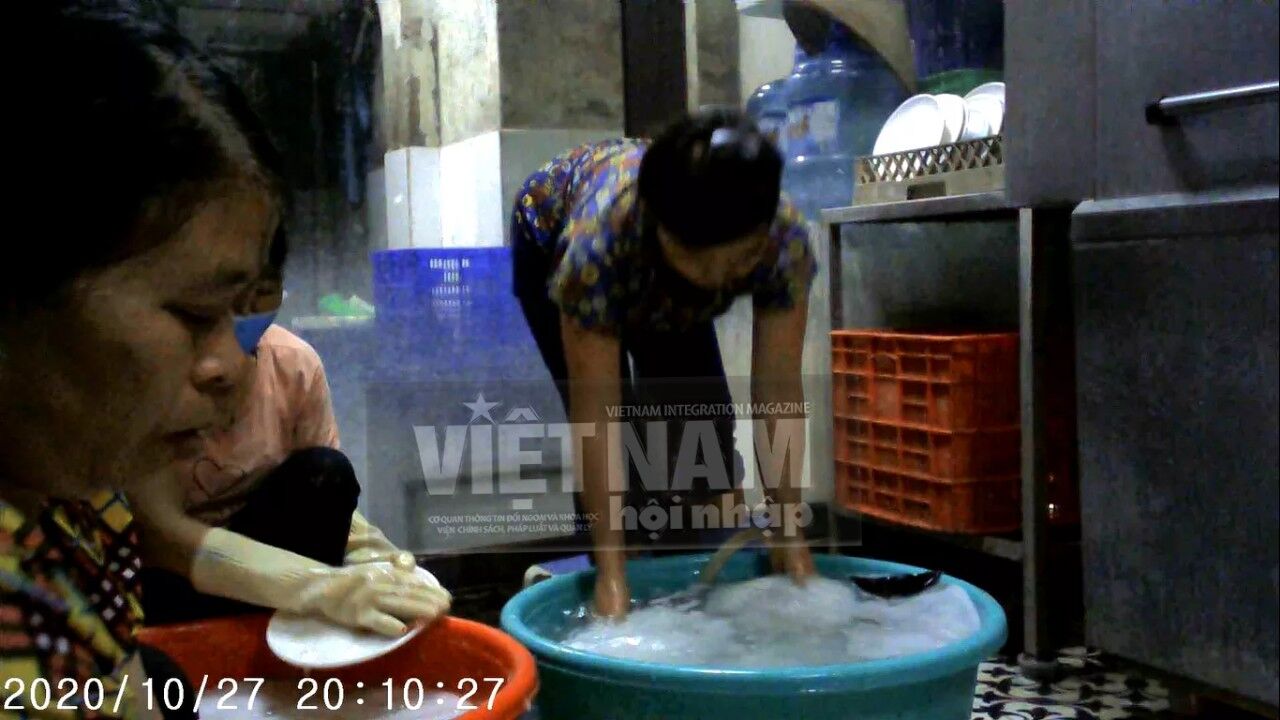 Khi được hỏi, tại sao trong quá trình chế biến thực phẩm lại không đeo bao tay, khẩu trang để đảm bảo vệ sinh an toàn thực phẩm thì một nhân viên tên N.T.H chia sẻ: “Ở đây có bao tay nhưng không phải đeo, như thế này là sạch sẽ rồi. Chỉ khi nào có cơ quan chức năng đi kiểm tra thì đeo, nhưng khi nào cơ quan chức năng đi kiểm tra thì chủ nhà hàng sẽ báo trước”.