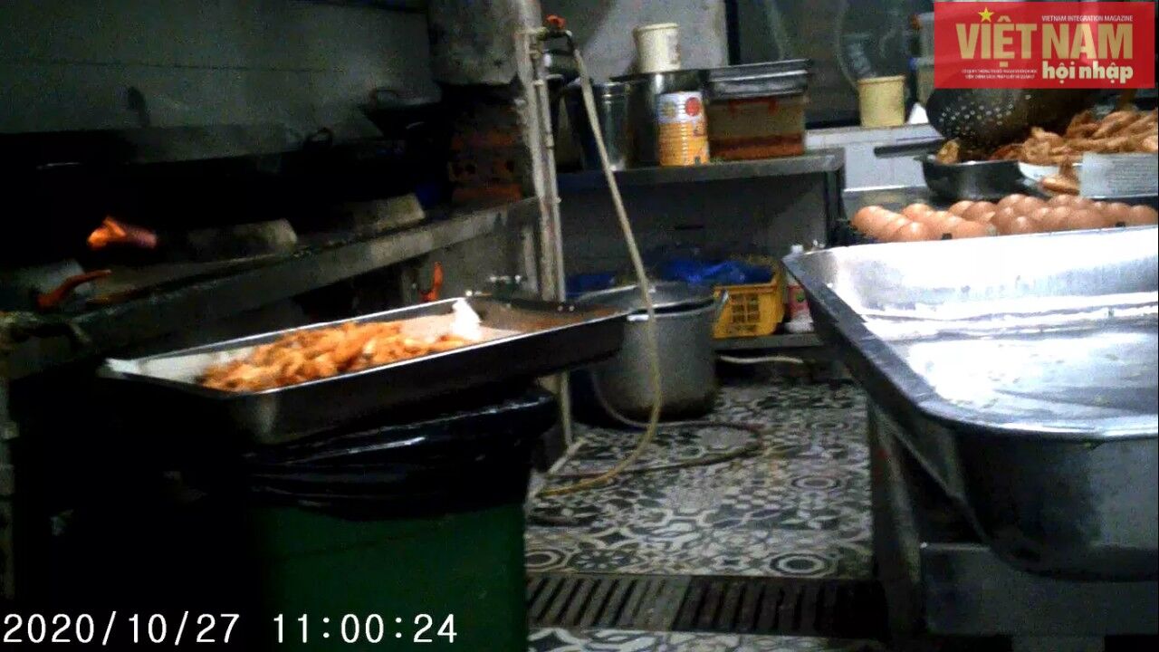 Cụ thể, theo những hình ảnh mà chúng tôi sau nhiều ngày có được thì tình trạng nhân viên chế biến để lẫn thực phẩm chín và sống cùng nhau diễn ra thường xuyên, thức ăn không được che đậy và nếu có che đậy thì cũng rất sơ sài, đối phó, đầu bếp dùng tay trần để nhào nặn, chế biến đồ ăn cho thực khách…