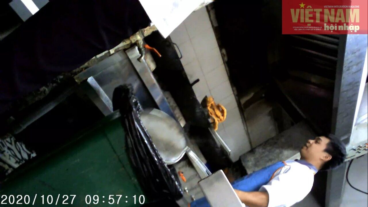 Còn về quy trình chế biến như: Cháo cá hồi, súp, nước lẩu. Khi được hỏi tại sao lại ném cả túi bóng ni lông bẩn vào nấu chung như vậy? không chỉ là không đảm bảo vệ sinh an toàn thực phẩm mà còn có nguy cơ gây bệnh cho khách hàng nhưng vị bếp trưởng không những không tiếp thu mà còn khẳng định: “không sao, phải để cả túi bóng ni lông như vậy mới tan ra được”. Không chỉ vậy, ngay cả trong lúc chế biến thực phẩm, thùng rác cũng được vị bếp trưởng này tận dụng khi liên tục để muỗng trong thùng rác, sau đó lại đưa lên cho vào chảo tiếp tục xào, rán….