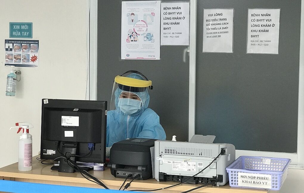 Các bệnh nhân và người nhà khi đến khám tại bệnh viện đều được khai báo y tế và sàng lọc tại cổng bệnh viện. Khi phát hiện bệnh nhân có dấu hiệu nghi mắc Covid-19 như ho, sốt sẽ được sàng lọc và cách ly tại khu khám sàng lọc. Tại đây, các nhân viên y tế, điều dưỡng và bác sĩ trong trang phục bảo hộ trực để khám và theo dõi.
