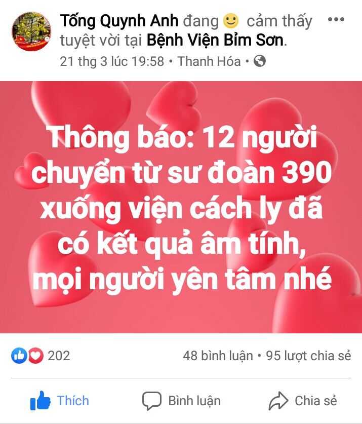 Tin vui đối với Sư đoàn 390 cùng cán bộ, nhân viên Bệnh viện và người dân, luôn được chia sẻ rất kịp thời