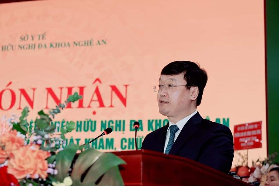 Ngành y tế Nghệ An nói chung và Bệnh viên Hữu nghị Đa khoa tỉnh nói riêng luôn nhận thức sâu sắc rằng, được Bộ Y tế công nhận và giao nhiệm vụ là bệnh viện tuyến cuối về chuyên môn kỹ thuật khám, chữa bệnh khu vực Bắc Trung Bộ, đây là nhiệm vụ mới cũng là trọng trách mới và đồng thời cũng mở ra một chặng đường mới trong tương lai; là giai đoạn chuyển mình, tiếp tục khẳng định vai trò, trách nhiệm trong khu vực về công tác khám, chữa bệnh và chăm sóc sức khoẻ cho nhân dân. Để xứng đáng với sự tin tưởng của Bộ Y tế, Ngành y tế Nghệ An và Bệnh viện HNĐK tỉnh sẽ tiếp tục nỗ lực không ngừng, luôn sáng tạo, đổi mới trên mọi mặt. Tiếp tục xác định “Lấy người bệnh làm trung tâm cho mọi hoạt động của Bệnh viện”. Luôn giữ vững giá trị cốt lõi của đạo đức nghề y “Lương y phải như từ mẫu”. Chú trọng phát triển chuyên môn kỹ thuật và nguồn nhân lực với chất lượng phục vụ, điều trị tốt nhất, hướng đến xây dựng Bệnh viện thực sự là địa chỉ tin cậy của nhân dân các tỉnh khu vực Bắc Trung bộ. Một lần nữa đồng chí trân trọng cảm ơn lãnh đạo, các Vụ, Cục, các đơn vị trực thuộc Bộ Y tế;Trân trọng cảm ơn Tỉnh uỷ, HĐND, UBND và các Sở, Ban, ngành của tỉnh đã luôn quan tâm lãnh đạo, chỉ đạo và đầu tư nguồn lực cho ngành Y tế.