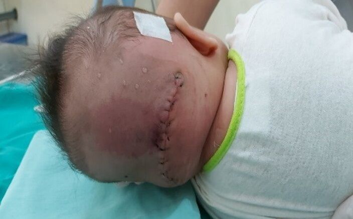 Theo các bác sỹ cho biết trường hợp bé Lê Thiên, 3 tháng tuổi, sau đẻ xuất hiện khối u vùng chẩm, kích thước 3 x 4 cm, có da lành che phủ. Bệnh nhân được khám và chẩn đoán khối u vùng chẩm và tiếp tục theo dõi, 03 tháng sau bệnh nhân tái khám, nhập viện.